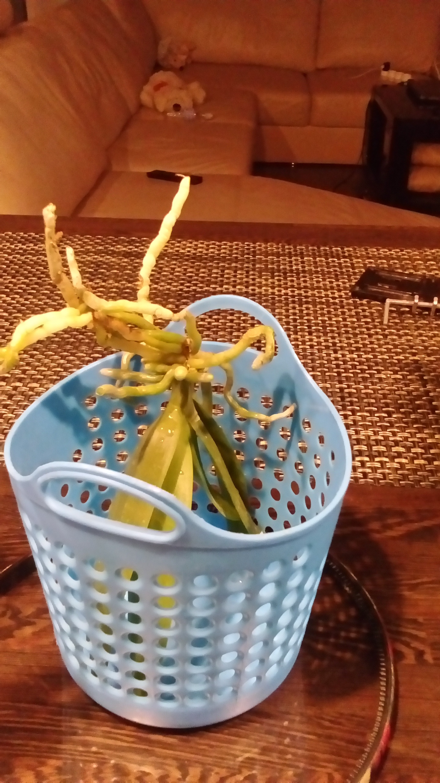 Вчера получила заказ. Посылка шла 11 дней (через Боксберри), честно - уже ни на что не надеялась). Но когда распаковала посылочку - увидела, что - растения пришли в отличном состоянии, листики и корни не пострадали. Сразу все замочила в растворе циркона, как было в рекомендациях. Сейчас ванда висит в пустой корзинке на окне, а ирэнка в транспортировочном горшке стоит под лампами, просыхает. Хочу поинтересоваться о дальнейшем уходе. Ванда должна расти в пустом горшке? или положить ее сверху на кору и мох? После карантина и адаптации Ирен добкин в какой субстрат высадить?